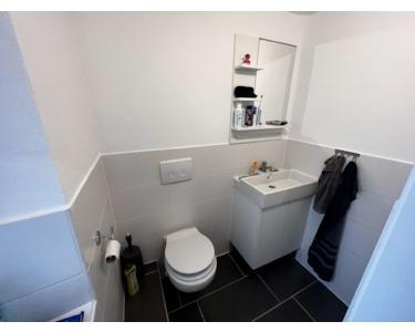 Im Erdgeschoss befindet sich eine Essküche, ein Wohnzimmer, ein Gäste-WC, ein Schlafzimmer, ein Badezimmer und ein Abstellraum.