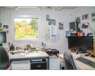 Die separat gebaute Einheit auf dem Hof bietet außerdem neben der Garage (mit Grube) eine Werkstatt sowie ein ehemaliges Lager, das wohnlich eingerichtet wurde.
