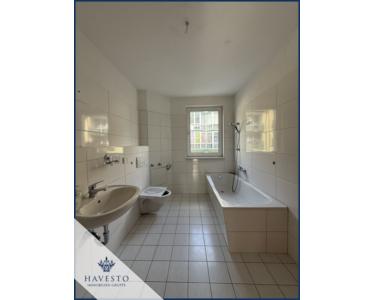 Das Badezimmer wurde teilweise modernisiert und präsentiert sich in frischem Zustand. Eine Badewanne mit neuer Duschwand und Duscharmatur verbindet praktischen Komfort mit Wohlfühlfaktor. Ergänzt wird das Bad durch ein neues Waschbecken mit passender Armatur, sodass hier ein moderner, gepflegter Gesamteindruck entsteht.