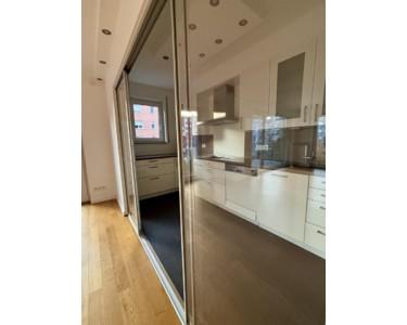 - Die komfortable Küche mit ca. 9,2 m2 Größe ist inklusive einer umfangreichen, hochwertigen Einbauküche. Abgetrennt zur Essecke durch ein schickes Glas-Schiebetür-Element.