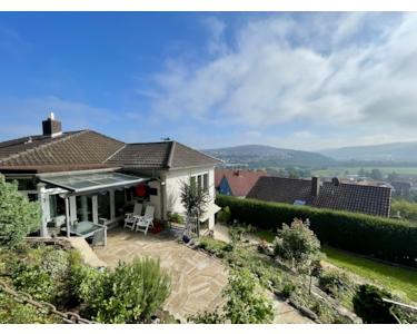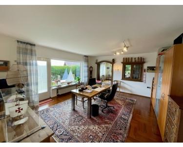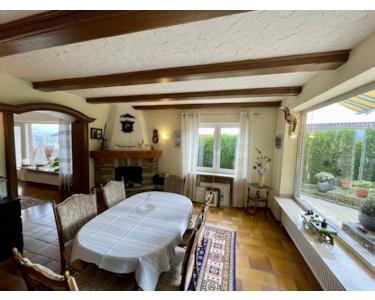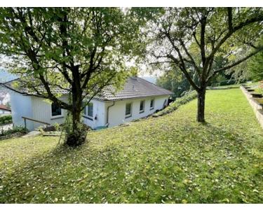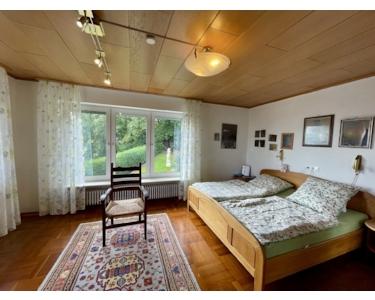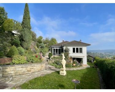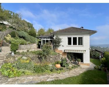 Dieses großzügige Einfamilienhaus mit Einliegerwohnung wurde im Jahr 1968 auf einem weitläufigen Grundstück in ruhiger Panoramalage in massiver Bauweise errichtet. Es wurde 1975 um einen Anbau sowie 1988 um ein zusätzliches Zimmer über der Garage erweitert. Das Anwesen bietet heute viel Platz für Familien, Mehrgenerationenwohnen oder Wohnen und Arbeiten unter einem Dach.