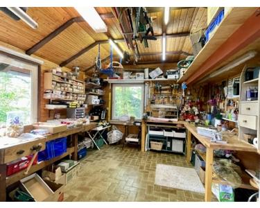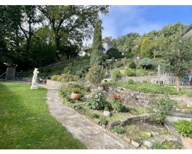 Das weitläufige, terrassenartig angelegte Grundstück besticht durch seine liebevolle Gestaltung und die idyllische Hanglage mit Panoramablick. Zum Anwesen gehört zudem ein Waldanteil, auf dem sich zwei Nebengebäude (Holzhäuser) befinden, die derzeit als Werkstatt bzw. Geräteschuppen genutzt werden.
