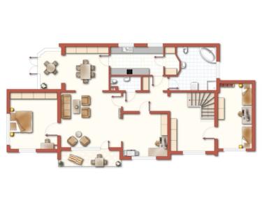 Das Haus verfügt über insgesamt 6 Zimmer, 2 Küchen, 2 Bäder sowie ein Gäste-WC und einen Wintergarten. Der Grundriss ist funktional und durchdacht gestaltet, mit großzügigen und lichtdurchfluteten Räumen.