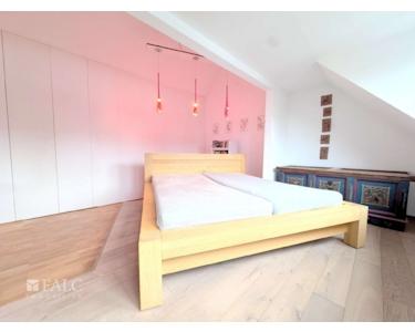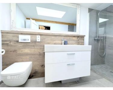Auch in den privaten Rückzugsbereichen wurde großer Wert auf Qualität gelegt: Das Badezimmer und das Gäste-WC im Erdgeschoss wurden vor rund fünf Jahren hochwertig renoviert und präsentieren sich in modernem Design mit zeitlosen Materialien. Das Schlafzimmer begeistert mit einem begehbaren Kleiderschrank, der großzügigen Stauraum und Ordnung auf elegante Weise verbindet.