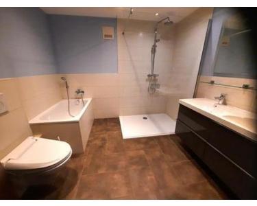 • Komplette Badsanierung: Begehbare Dusche, Sitzbadewanne, Doppelwaschbecken, Toilette