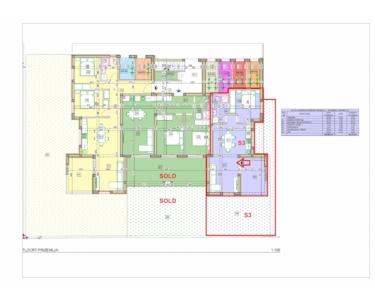Die Wohnung S3 besteht aus einem Schlafzimmer, Küche und Esszimmer, Wohnzimmer, Bad, überdachter Terrasse, Garten und Parkplatz. Die Gesamtfläche beträgt 120,08 m².