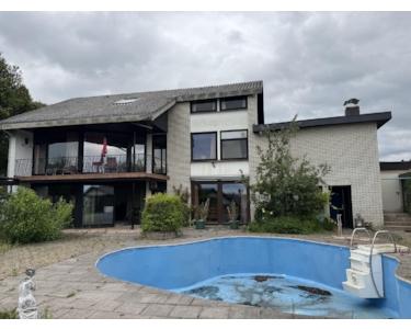 Die Immobilie besticht durch eine ungewöhnlich großzügige, offene und lichtdurchflutete Aufteilung des Wohnbereichs, der durch mehrere raumhohe Verglasungen und Schiebetüren scheinbar nahtlos in den uneinsehbaren Garten mit Pool, überdachte Sitzgruppe und Gartenhaus übergeht. Ein offener Kamin sorgt für Behaglichkeit. In der zweiten Etage bieten 3 Schlafzimmer und ein mit Einbauschränken versehener begehbarer Kleiderschrank ausreichend Platz für eine große Familie.