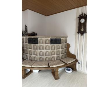 Ein Blickfang im Wohnzimmer ist ohne Frage der schöne Kachelofen.