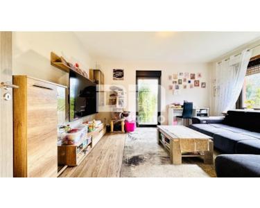 Herzstück der Wohneinheit ist das lichtdurchflutete Wohn-/Esszimmer mit großen Fensterfronten und direktem Zugang zur gepflasterten Sonnenterrasse (Sondernutzungsrecht).