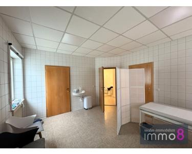 Diese großzügige Gewerbefläche im 1. Obergeschoss eines gepflegten Wohn- und Geschäftshauses am Hohenwarter Marktplatz ist aktuell als Praxis konzipiert, bietet aber vielseitige Nutzungsmöglichkeiten.