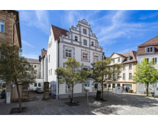 This extraordinary old building apartment is located on the first floor of a listed building, which was built in 1596 by the margrave's court architect Gideon Bacher as a guest house for the Ansbach Residence.