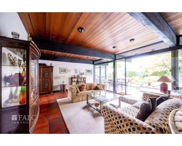 Weiter geht es in das geräumige Wohnzimmer, das durch große Fensterfronten viel Tageslicht und einen herrlichen Blick in den privat angelegten Garten bietet. Ein Kamin sorgt für gemütliche Abende. Vom Wohnzimmer aus haben Sie Zugang zur Terrasse. Der Garten selbst ist ein Highlight, perfekt für Familienaktivitäten und Entspannung im Freien.