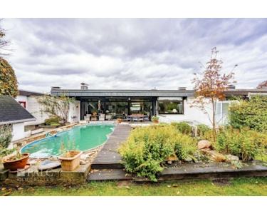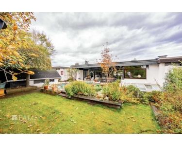 Willkommen in diesem charmanten Bungalow, der 1976 erbaut wurde und mit einer großzügigen Wohnfläche von rd. 206 m² überzeugt. Beim Betreten des Hauses gelangen Sie in einen einladenden Eingangsbereich, der Ihnen Zugang zur Küche, dem Wohnzimmer und in das Untergeschoss bietet. Hier finden Sie das praktische Gäste-WC, ideal für Besucher sowie ein Abstell- oder Garderobenraum, der den Alltag erleichtert.