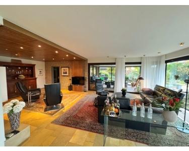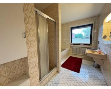 Repräsentatives, gepflegtes Wohnhaus mit Doppelgarage und großem Wellnessbereich in bevorzugter Lage. Das große Grundstück mit schönem Garten in Süd-Westausrichtung ist mit einem Sichtschutzzaun vor fremden Blicken geschützt. Insgesamt bietet das Haus absolut gehobenen Wohnkomfort, verteilt auf das Erdgeschoss mit großzügigem Wohn-Essbereich mit Kamin, verglaster Terrasse, Küche mit Einbauküche, Arbeitszimmer, Flur mit Garderobe, Gäste WC, Hauswirtschaftsraum und einem separaten Bereich mit Schlafzimmer und Bad mit Wanne, Dusche und WC. Im Dachgeschoss befinden sich ein Schlafbereich mit Ankleide, überdachtem Balkon und Bad mit Wanne, Dusche, Bidet und WC, Abstellraum sowie zwei Kinderzimmer mit Balkon und eigenem Duschbad mit WC.