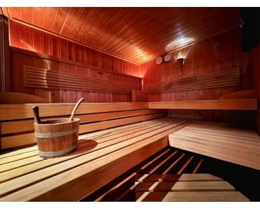 Entspannung finden Sie im eigenen Wellnessbereich mit Innenpool, Finnischer Sauna und einer separaten Dampfsauna, dem Ruhebereich und der Bar sowie der vorgelagerten Terrasse.
