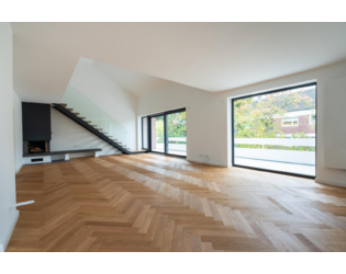 Teilweise erneuerte, dreifach verglaste bodentiefe Fenster und Festverglasungen mit elektrischen Raffstoren garantieren Energieeffizienz und Wohnkomfort auf zeitgemäßem Niveau. Klimageräte in der oberen Ebene runden das Angebot ab. Ein Gemeinschaftsgarten mit ca. 100 Quadratmetern steht zur Nutzung frei. Eine Doppelgarage kann für 49.000 Euro erworben werden.
