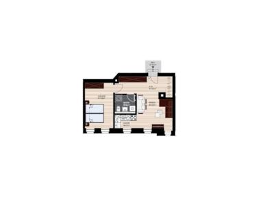 Die Erdgeschosswohnung verfügt über eine Wohnfläche von ca. 46,70 m², bestehend aus Schlafzimmer, Bad und einem offenen Flur-, Küchen- und Wohnbereich. Zur Wohnung gehört ebenfalls ein Keller.