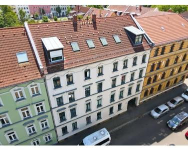 Bei der angebotenen Immobilie handelt es sich um eine Eigentumswohnung, in einem gepflegten Mehrfamilienhaus, im beliebten Leipziger Stadtteil Altlindenau. Das denkmalgeschützte Haus wurde um 1902 erbaut und zur Jahrtausendwende vollständig saniert. Insgesamt gibt es 10 großzügige Wohneinheiten. Besonders hervorzuheben ist, neben der guten Lage des Objektes, auch der Personenaufzug im Haus.
