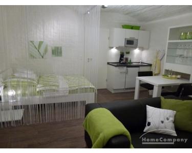 Augestattet mit einem Wohn-/Schlafraum mit Esstisch, einem gemütlichen Sofa, einem großen Loewe Fernseher mit Satellitenanschluss, einem Doppelbett (welches clever versteckt hinter einem Fadenvorhang ist) und einem Kleiderschrank, einer voll ausgestatteten Single-Küchenzeile (Kühlschrank, Keramik–Kochplatte, Mikrowelle, Kaffeemaschine), einem schwarz-weiß gefliesten Badezimmer mit großer, bodentiefer Dusche, einem geräumigen Flur mit Garderobe und eigenem Eingang. Die Ausstattung ist neu, modern und hell.
