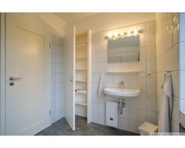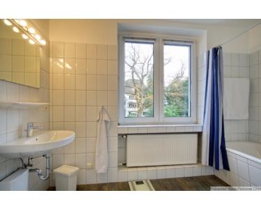 Alle Zimmer in der Wohnung sind mit einem hochwertigen Laminatboden ausgestattet. Das Tageslichtbad mit Wanne und Duschaufhängung verfügt über einen kleinen praktischen Wandschrank. In der separaten Hauswirtschaftskammer sind Waschmaschine, Bügeleisen und Bügelbrett untergebracht. Eine Grundausstattung Koch- und Essgesichirr und Bettwäsche (4 Jahreszeiten-Decken) und Handtücher wird zur Verfügung gestellt.