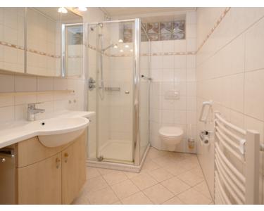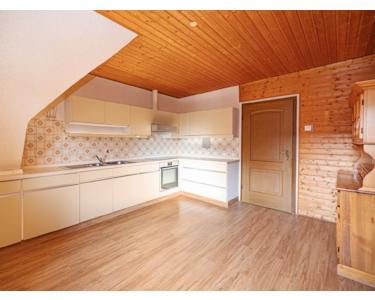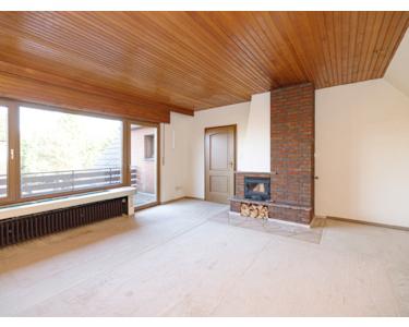Auch das Obergeschoss überzeugt durch eine durchdachte Aufteilung. Zwei Schlafzimmer, eine große Wohnküche sowie ein Wohnzimmer mit Kamin und Balkonzugang schaffen ein behagliches Ambiente. Ein saniertes Duschbad (2015) und ein Abstellraum runden das Raumangebot ab.