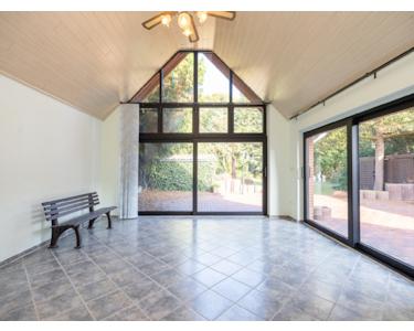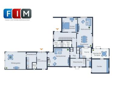 Im Anbau befindet sich ein großer Wintergarten mit Fußbodenheizung, eine Arbeitsküche und ein Vorraum mit Gäste-WC – ideal für Familienfeste oder als separater Aufenthaltsbereich.