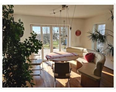 Der Essbereich liegt optimal belichtet in einem Erker, mit Ausgang zur großen Süd-Terrasse.