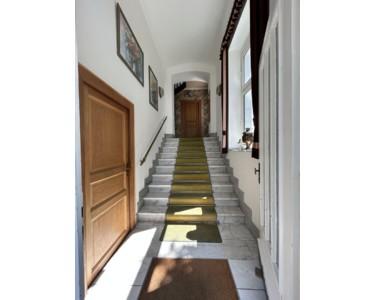 Im Eingangsbereich sind die Marmorstufen und Messinghandläufe größtenteils noch im Originalzustand.