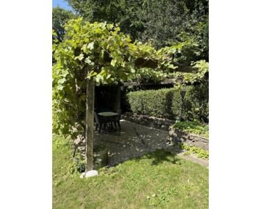 Die solide Bausubstanz bietet eine hervorragende Grundlage und viel Potenzial für eine vielfältige Nutzung. Der Garten lädt zum Verweilen ein und auf der Terrasse findet man unter einem Dach aus Weinreben ein schattiges Plätzchen.