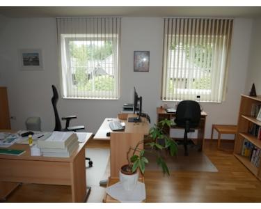Im Obergeschoss steht ein großes Büro mit anliegendem Archiv, eine Schlafraum mit angrenzendem Ankleidezimmer und ein großes Bad mit Sauna zur Verfügung.