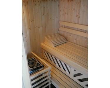 An kalten Winterabenden versprechen die Sauna und ein großer finnischer Specksteinofen Gemütlichkeit und Wärme.