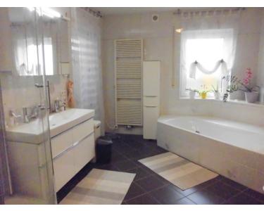 p) 1 großzügiges Badezimmer mit großer Wanne, Dusche, großem Waschtisch, Bidet und WC,