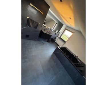 - Großformatfliesen (1,20 m × 1,20 m) im gesamten Wohnbereich.