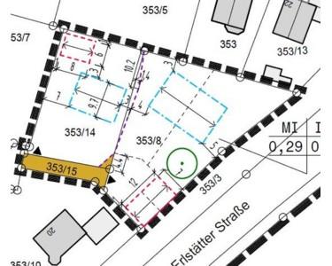 - Derzeit sieht der Bebauungsplan mit dem Nachbargrundstück ein großes Mehrfamilienhaus vor. Dieses Grundstück ist ebenfalls in meinem Besitz und wird auch zum Verkauf angeboten (Inserat OM-403873).