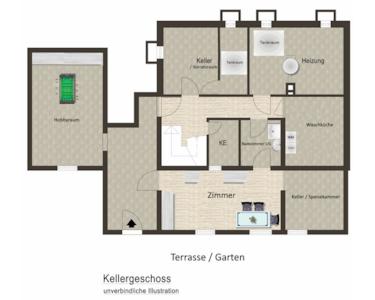 Auch die Garage mit ihrer Unterkellerung ist ein Highlight, da hier ein großer, praktischer Hobbyraum entstanden ist, in dem sich sogar Platz für eine Tischtennisplatte findet! Im Untergeschoss haben Sie direkten Zugang zu diesem Raum.