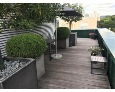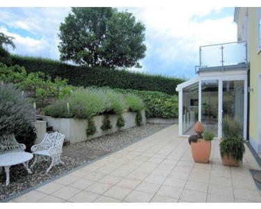 Der wunderschöne Garten ist mediteran angelegt. Mit einem terrassenförmigen Weinberg, viel Lavendel und Formschnittsträuchern fühlt man sich wie in der Toscana! Die Anlage ist komplett beleuchtet. Eine