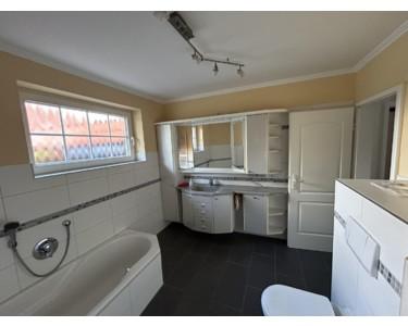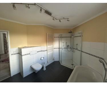 Das modernisierte Badezimmer überzeugt mit ebenerdiger Dusche und Badewanne, ergänzt durch ein separates Gästebad.