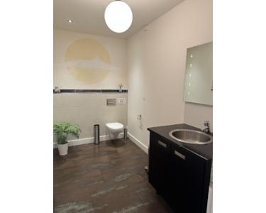 Im Erdgeschoß befinden sich 2 große Zimmer, ein Empfangsbereich, ein kleiner Raum und ein Gäste, bzw. Kunden WC. Ebenso gibt es einen Kleinen Innenhofbereich mit Dach.