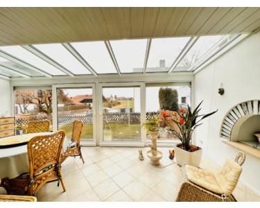 Licht & Atmosphäre: Seit 2014 gibt es einen großzügigen Wintergarten – ideal für Frühstück im Grünen, entspannte Stunden mit Tageslicht und hängende Pflanze.