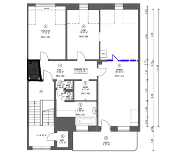 Wir werden nach Verkauf noch eine Trennwand mit Tür wiederherstellen, die früher entfernt worden war - auf unsere Kosten - dann sind es diese 4-Zimmer.