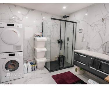 - Badezimmer mit Dusche und Waschmaschinenanschluss