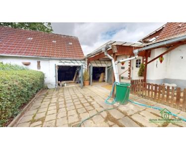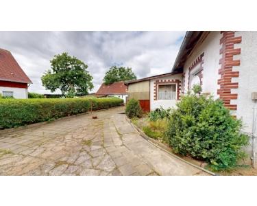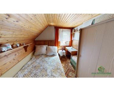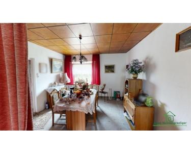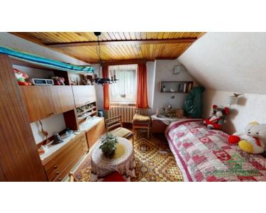 Das Haus ist in massiver Bauweise errichtet und verfügt über ein Satteldach mit Betondachsteinen sowie einen Teilkeller. Die Raumaufteilung ist klassisch und funktional. Im Erdgeschoss erwartet Sie unter anderem ein Wohnzimmer, eine separate Küche mit vorhandener Einbauküche sowie ein Badezimmer mit Badewanne. Die Innenausstattung entspricht überwiegend dem Stand der 90er Jahre bzw. dem Ursprungsbaujahr – eine umfassende Sanierung ist einzuplanen.