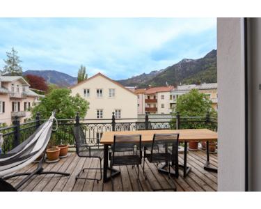 Hier genießen Sie von frühmorgens bis spätabends die wohltuende Sonneneinstrahlung, während Sie von der beeindruckenden Bergkulisse umgeben sind. Die zentrale Lage ermöglicht Ihnen, innerhalb von nur zwei Minuten fußläufig die pulsierende Fußgängerzone zu erreichen.