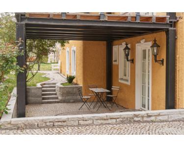- Außenlege mit 5 Unterteilungen für Holz, Fahrräder etc.