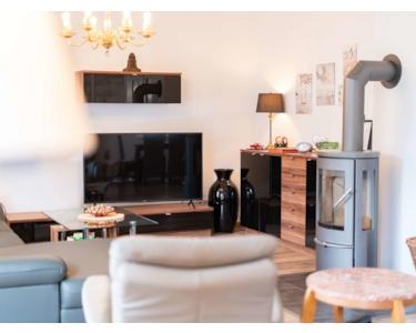 Ein echtes Highlight ist der leistungsstarke Kamin (7 kW), der nicht nur Gemütlichkeit schafft, sondern auch das gesamte Haus spürbar mit Wärme versorgt.