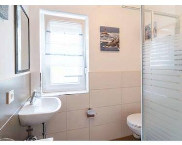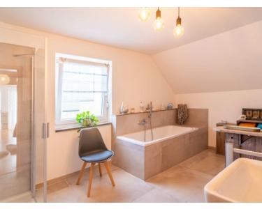 Im Obergeschoss erwartet Sie ein sehr großzügiges und 2024 hochwertig saniertes Badezimmer mit Badewanne und Dusche, das durch seine Größe und Helligkeit überzeugt.