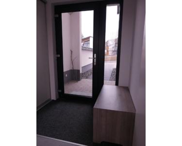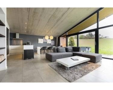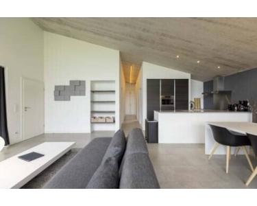Beim Betreten dieser luxuriösen, ebenerdigen Villa werden Sie von der großen Glasfront auf der Rückseite mit fantastischem Blick auf die Skipiste überrascht. Über die geräumige Diele mit Garderobe und zusätzlichem Abstellraum gelangen Sie ins Wohnzimmer. Das großzügige Wohnzimmer verfügt über eine luxuriöse offene Küche sowie eine komfortable Sitz- und Essecke. Die Sitzecke ist mit einem stimmungsvollen Gaskamin und einem TV ausgestattet. Die griffl ose Küche besitzt eine Insel, Einbaugeräte (Bauknecht) und viel Stauraum. Durch die Schiebetür gelangen Sie auf die überdachte Terrasse mit unverbauter Aussicht und direkter Anbindung an die Skipiste.
