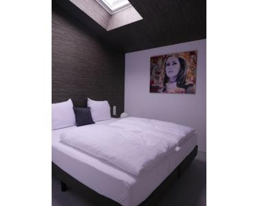 Schlafzimmer 2 verfügt über ein öffnbares Dachfenster, Nachttische und eine eingebaute Schrankwand.