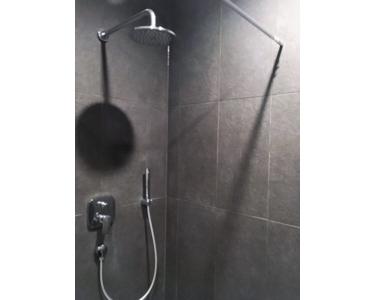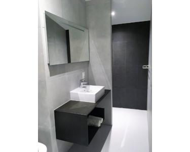 Es gibt außerdem ein zusätzliches Badezimmer mit Design-Waschbecken, zusätzlichem WC und bodengleicher Dusche.