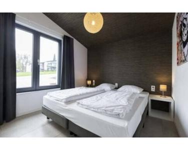 Schlafzimmer 1 unterscheidet sich von allen anderen Villen im Park. Anstelle eines Etagenbetts finden Sie hier eine maßgefertigte Schlafgalerie (Vide) mit einem gemütlichen Doppelbett oben. Unter der Galerie gibt es ein zusätzliches Schlafsofa für Kinder mit TV und DVD-Player.
